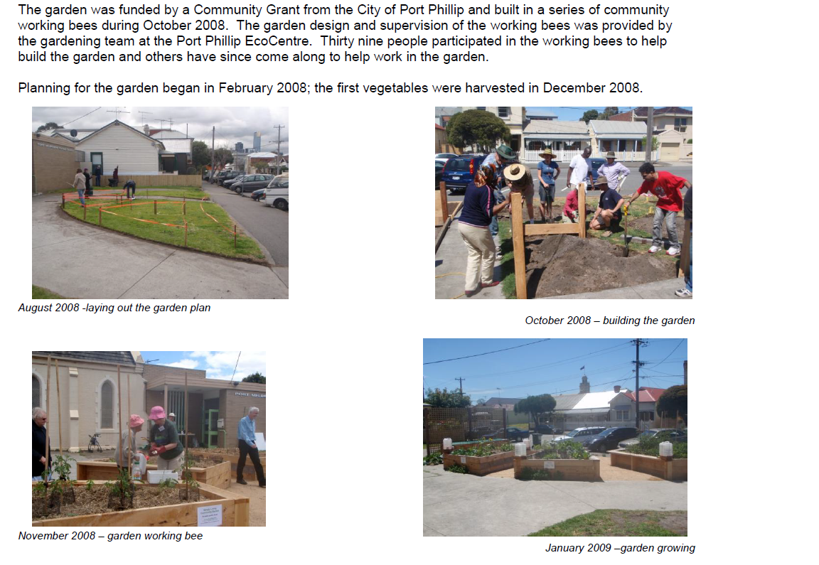 See more information about their community garden and activities here: https://www.southportuniting.org.au/congregations/port-melbourne
