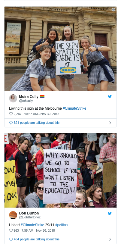 The strike was born out of a letter by Milou and Harriet, year 8 students in Castlemaine, Victoria, who decided to temporarily sacrifice their education “in order to save our futures” and invited other concerned students to join them.